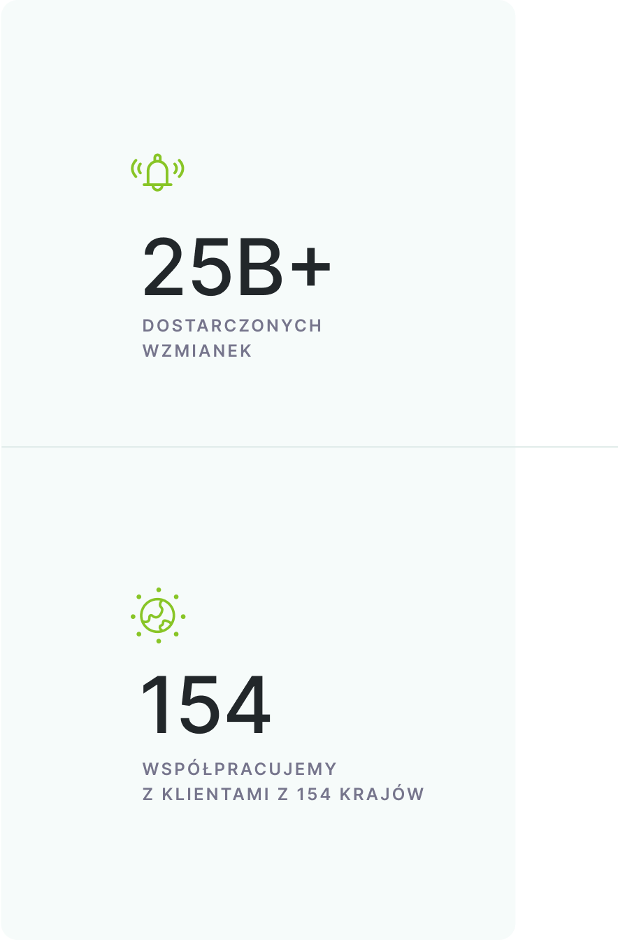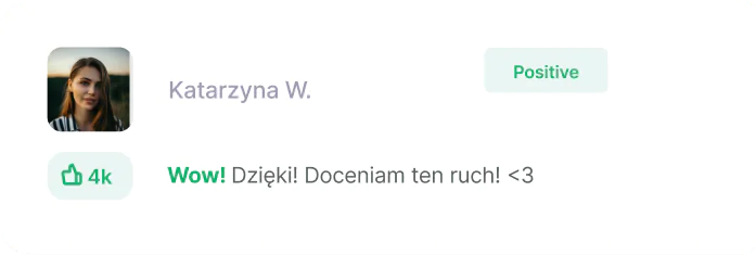 Otrzymuj natychmiastowe powiadomienia gdy ktoś wspomina Twoją markę i reaguj błyskawicznie, aby wzmacniać pozytywne relacje z klientami i społecznością oraz skutecznie zarządzać kryzysami wizerunkowymi.
