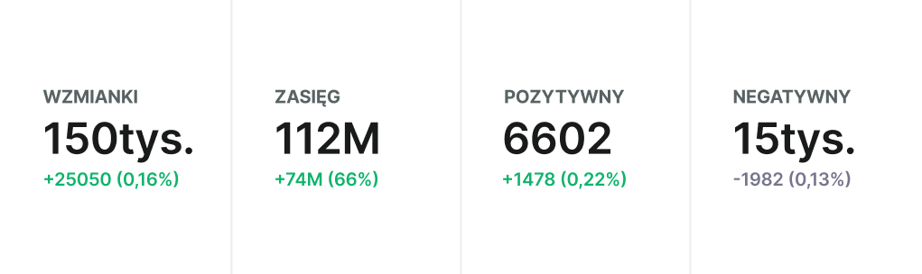 Liczba wzmianek, zasięg, zaangażowanie, emocje, język, influencer score, najpopularniejsze hashtagi i wiele innych wskaźników są dostępne w jednym miejscu. Dzięki nim możesz zdobyć kluczowe informacje o swojej marce i świadomie wpływać na jej wizerunek.